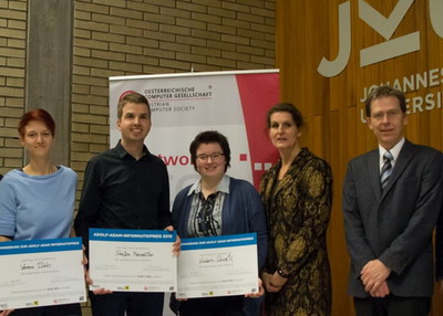 Der Adolf-Adam-Informatikpreis wird jährlich von der JKU für die beste Informatik-Masterarbeit des vergangenen Studienjahres vergeben. Studierende stellen in allgemein verständlicher Form ihre Arbeit vor. Schülerinnen und Schüler wählen anschließend per SMS-Voting den Preisträger bzw. die Preisträgerin (unter allen abgegebenen Stimmen wird ein iPad Mini verlost!). Die Präsentationen vermitteln etwas von der Faszination der Informatik und zeigen, womit sich unsere Studierenden beschäftigen.