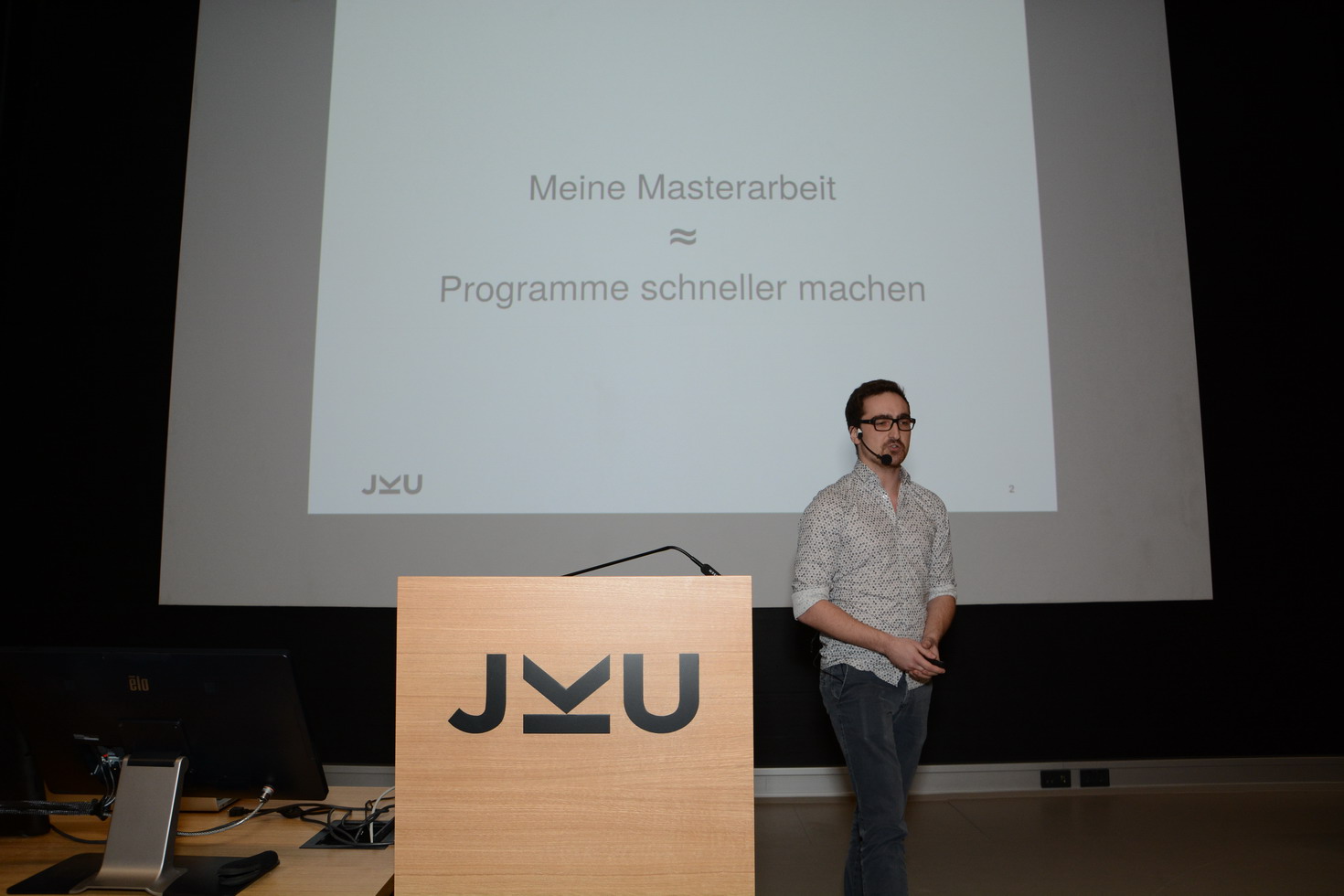 Der Adolf-Adam-Informatikpreis wird jährlich von der JKU für die beste Informatik-Masterarbeit des vergangenen Studienjahres vergeben. Studierende stellen in allgemein verständlicher Form ihre Arbeit vor. Schülerinnen und Schüler wählen anschließend per SMS-Voting den Preisträger bzw. die Preisträgerin (unter allen abgegebenen Stimmen wird ein iPhone verlost!). Die Präsentationen vermitteln etwas von der Faszination der Informatik und zeigen, womit sich unsere Studierenden beschäftigen.