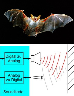 Vortragsteil: Nach einer kurzen Einleitung über die Orientierung von Fledermäusen werden Grundlagen der akustischen Signalverarbeitung vermittelt, die es uns ermöglichen das Prinzip des Echolots auf einem Computer zu realisieren. Eine Live-Demonstration des Echolots als Distanzmesser rundet den Vortrag ab.